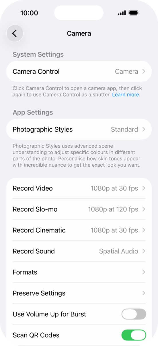 Cinematic Mode: این حالت را روی رزولوشن 4K و نرخ ۲۴ فریم (استاندارد سینما) تنظیم کنید.